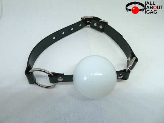 Huge (56 or 52 mm) White silicon ball gag with PVC strap -Lockable -Vegan