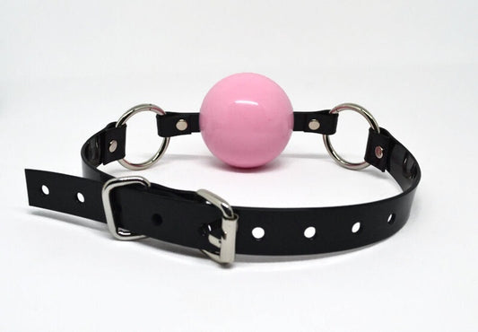 Huge (56 or 52 mm) Pink silicon ball gag with PVC strap -Lockable -Vegan