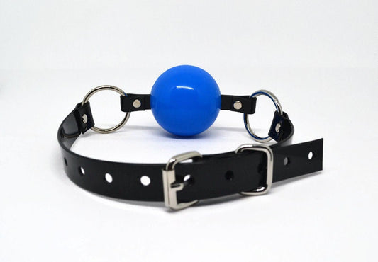 Huge (56 or 52 mm) Blue silicon ball gag with PVC strap -Lockable -Vegan