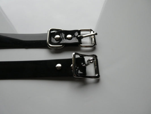 Ballgag with short chin strap in black PVC -Lockable -Vegan