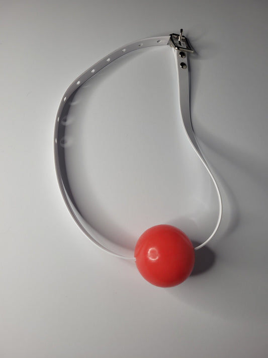 Ballgag with short chin strap in white PVC -Lockable -Vegan