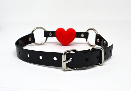 Red heart Gag with PVC black strap -Lockable -Vegan