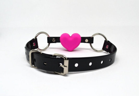 Pink heart Gag with PVC black strap -Lockable -Vegan