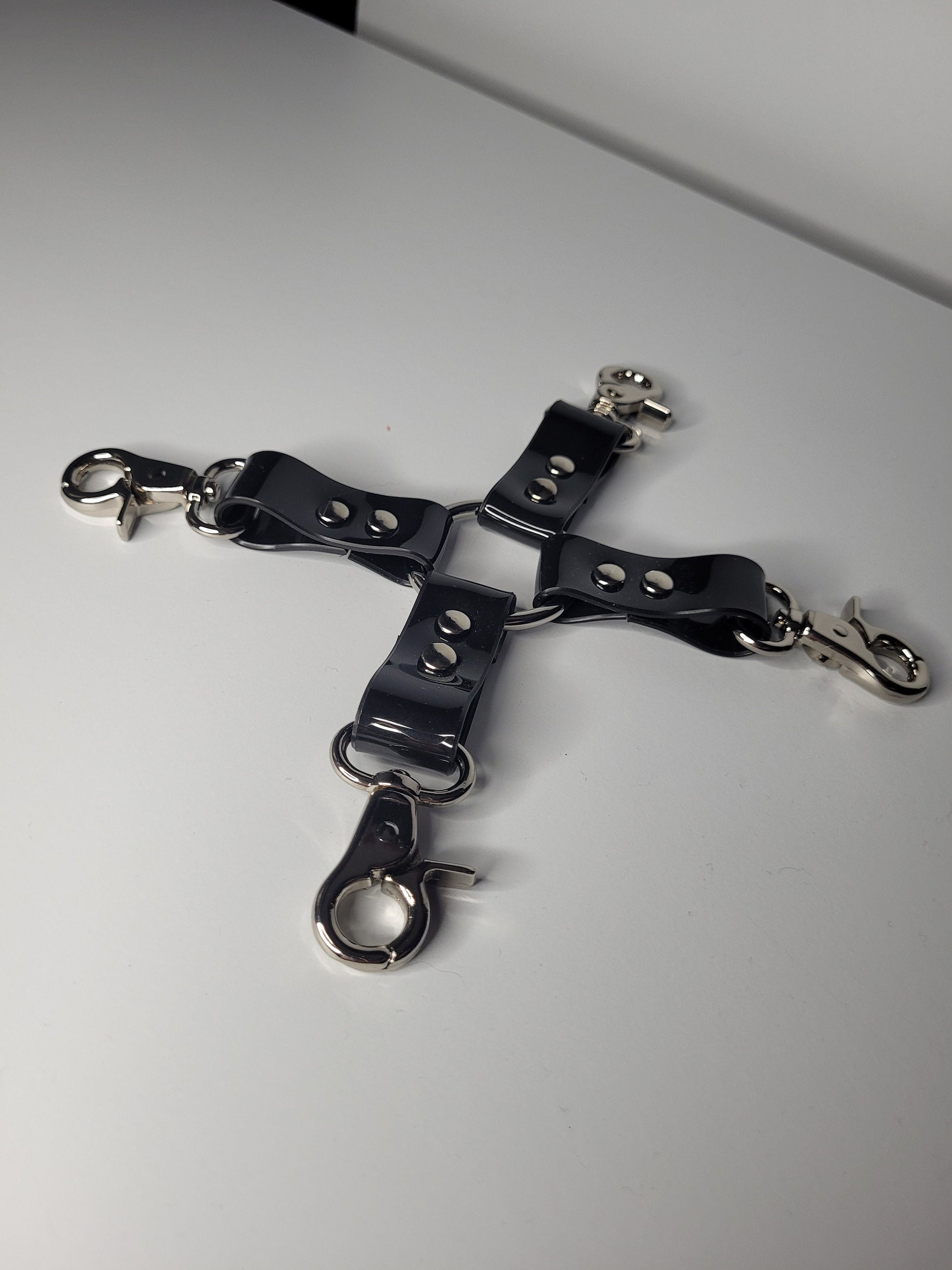 Four way connector made of PVC 19 mm (3/4in) width with 4 carabiner